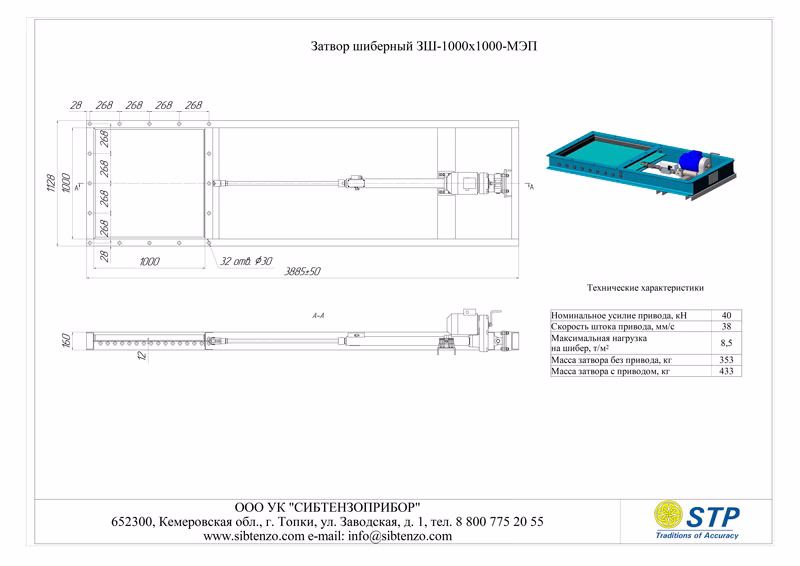 Затвор шиберный 3Ш-1000х1000-МЭП